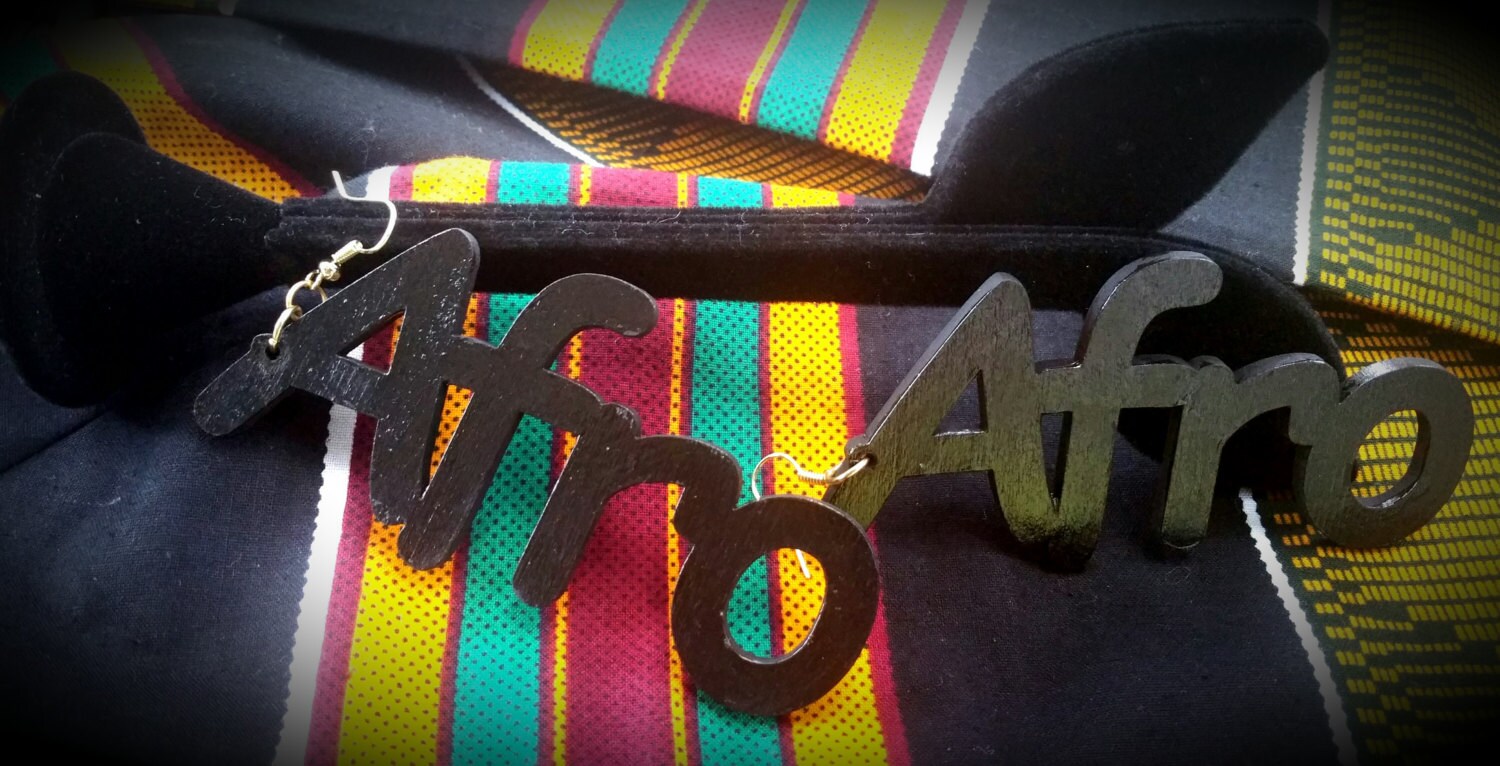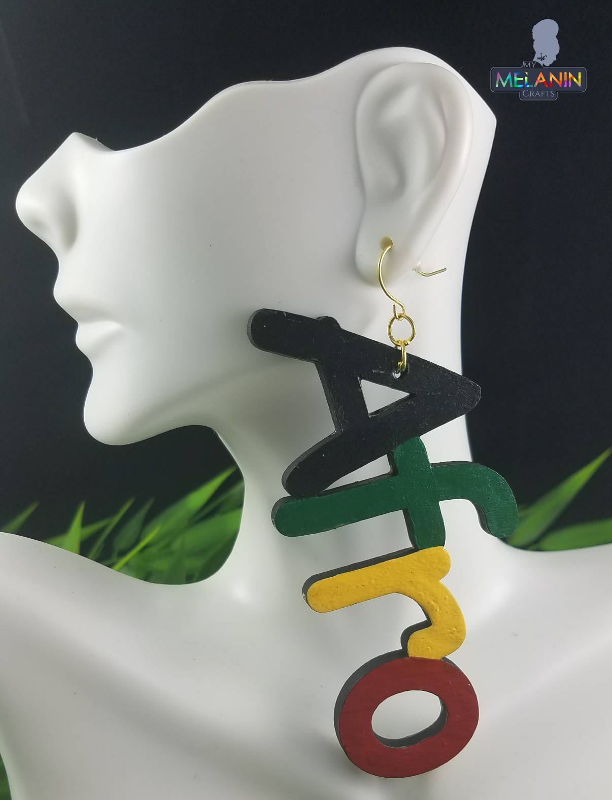 The NEW Afrocentric inspired earring pieces. These earrings measure around 3 inches in length (top to bottom). The backside is black with the creators initials marked on the back in small gold font.