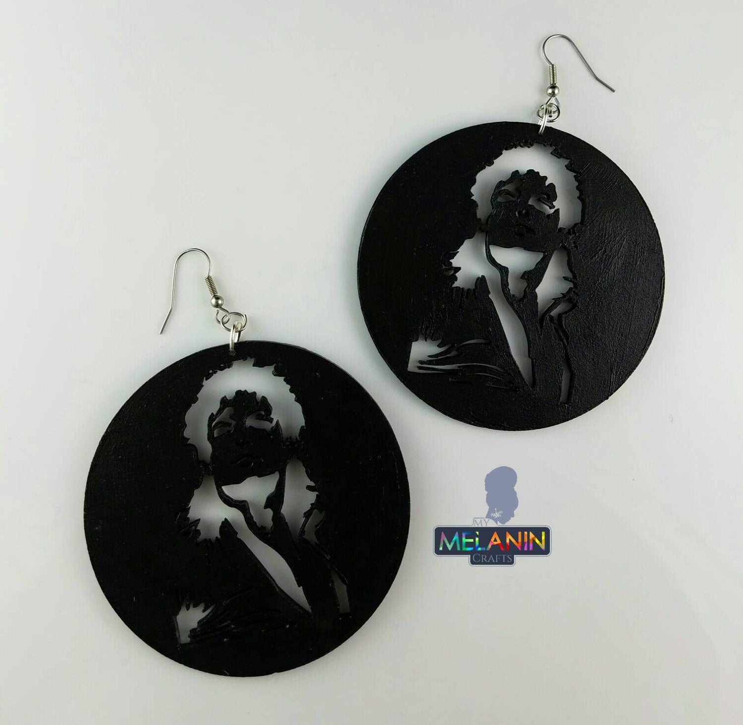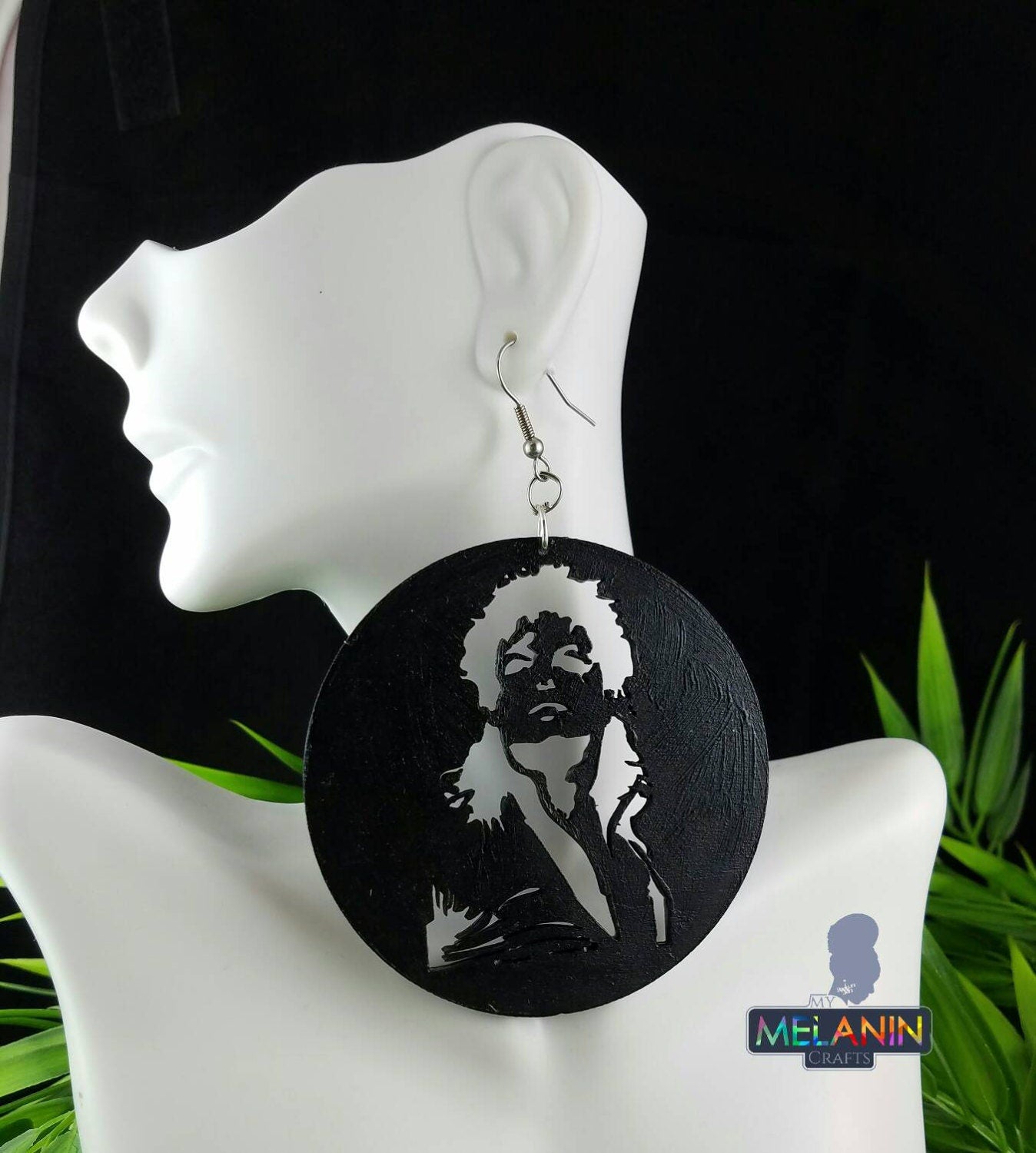 These earrings measure around 3 inches in length. The backside is marked with the creators initials marked on the back in small gold font. Available in Black and Natural Wood.